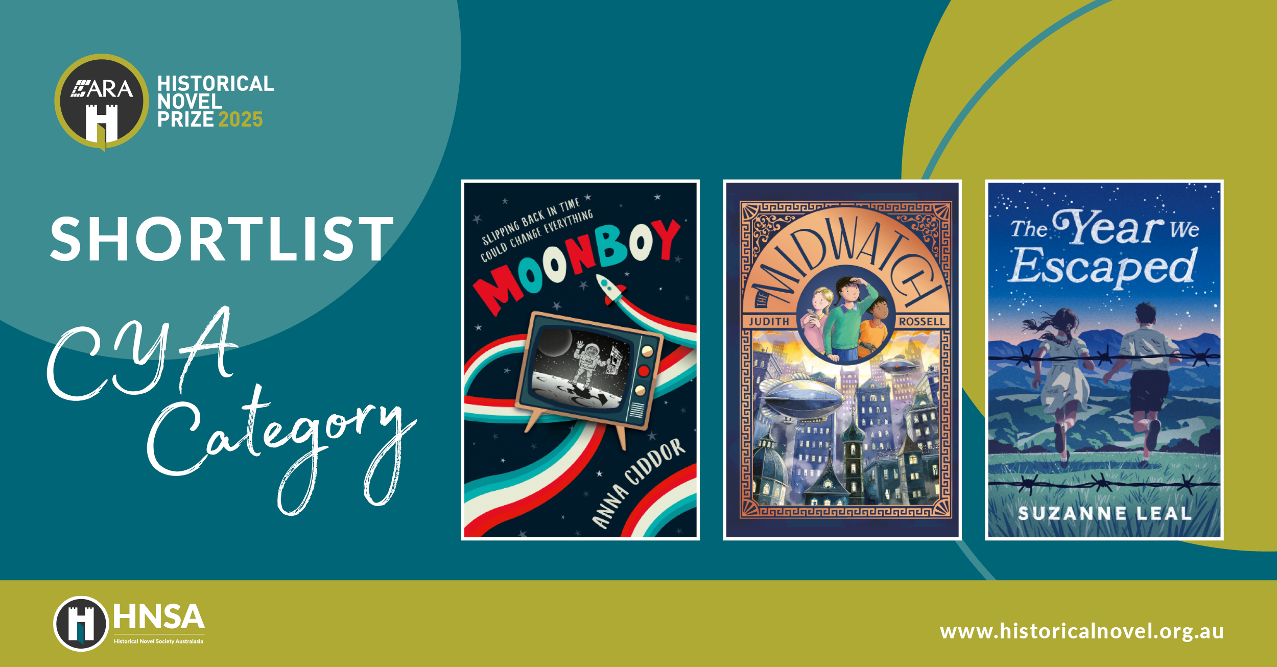 I’m delighted to share that The Year We Escaped has been shortlisted for the 2025 ARA Historical Novel Prize – Children & Young Adult (CYA) Category, together with Moonboy by Anna Ciddor and The Midwatch by Judith Rossell.